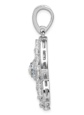 Sterling Silver White and Blue CZ Hamsa Eye Necklace