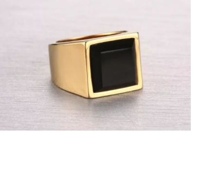 Stainless Steel Black Agate GoldIp Ring