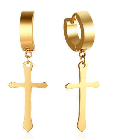 Gold Stainless Steel Dangling Cross Hoop Earrings