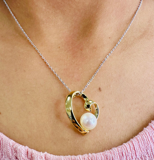 Elle Sterling Silver Fresh Water Pearl Heart Necklace
