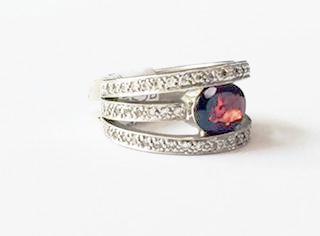 Sterling Silver Rose Gold-plated Black Quartz Cz Ring