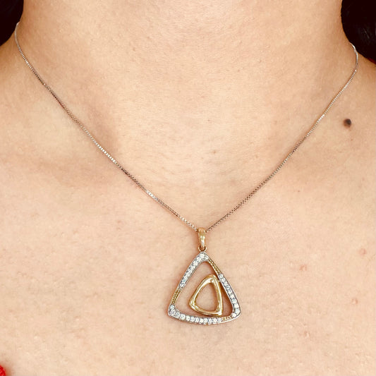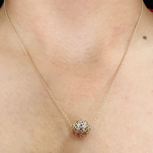 10K White and yellowgold Diamond Cut Beaded Drop necklace