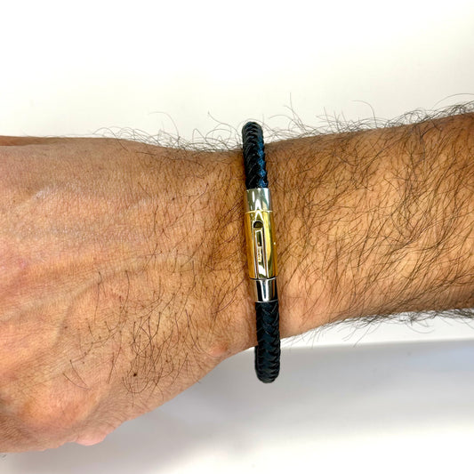 Italgem Stainless Steel Hybrid Leather Bracelet