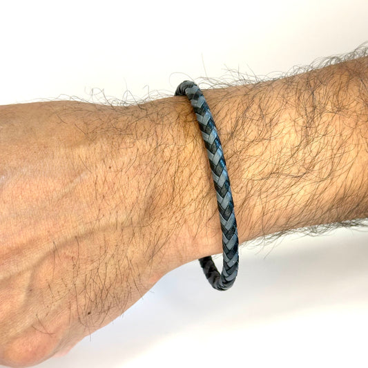 Italgem Stainless Steel Grey and Black Leather Bracelet