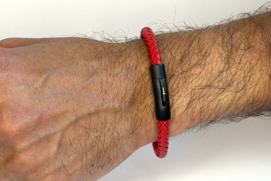 Italgem Stainless Steel Checkered Clasp Red Leather Bracelet