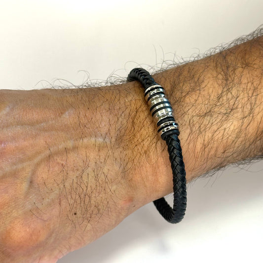 Italgem Stainless Steel Black Matt Leather Bracelet