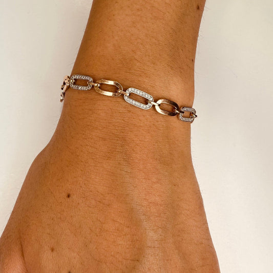 Two-Tone Rosegold Charm Bracelet with Cubic Zirconia