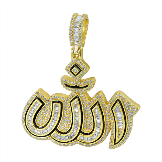 Sterling silver Rhodium Allah pendant with cubic zirconia (Gold Plated)