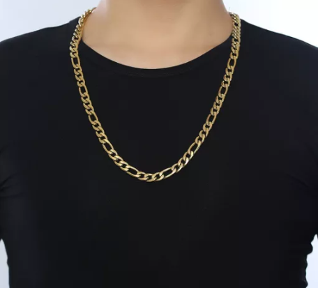 Stainless Steel 9mm Goldip Figaro Link Chain
