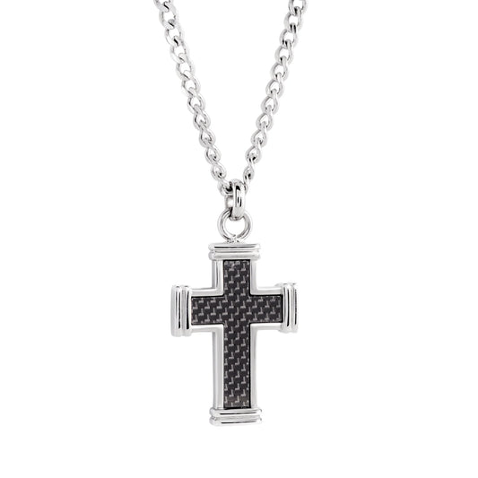 Stainless Steel Carbon Fiber Cross Necklace