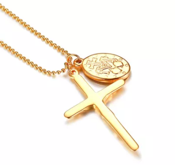 Stainless Steel Miraculous Medal Necklace with Cross