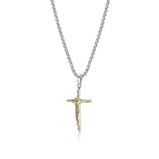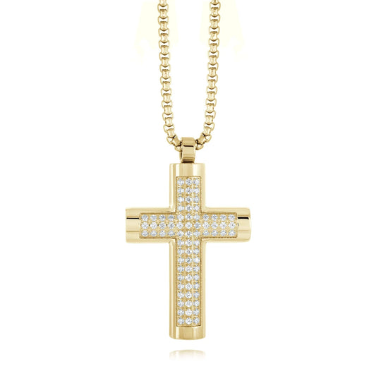 Stainless Steel Gold Ion Cubic zirconia Cross Necklace
