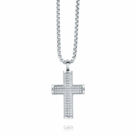 Stainless Steel Black Ion Cubic zirconia Cross Necklace