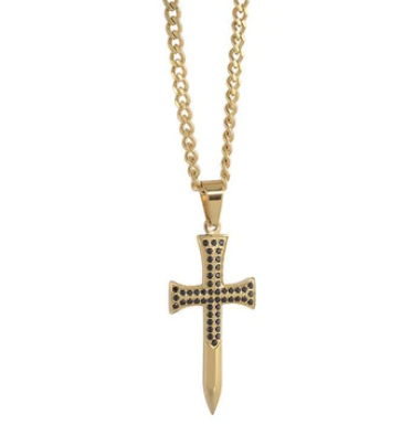 Stainless Steel Black Cubic zirconia Black Ion Sword Cross Necklace