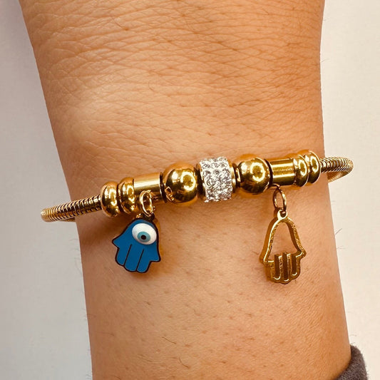 Stainless Steel Evil Eye and Hamsa Bracelet