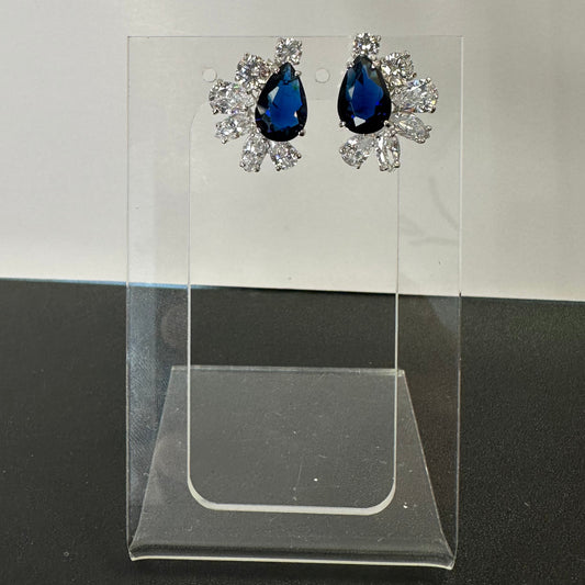 Sterling Silver Blue Sapphire & White Cubic Zirconia Earring