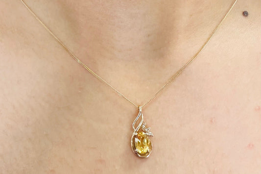 10K White and yellowgold Diamond Cut Beaded Drop necklace