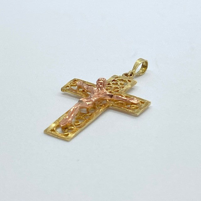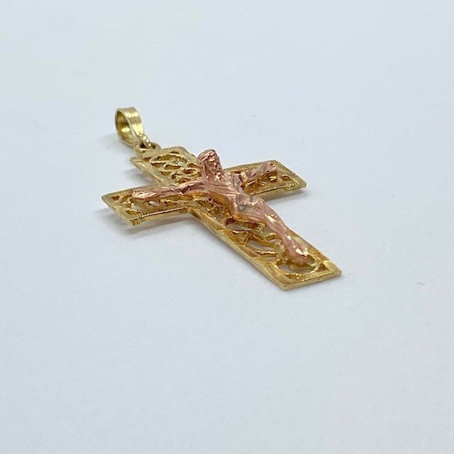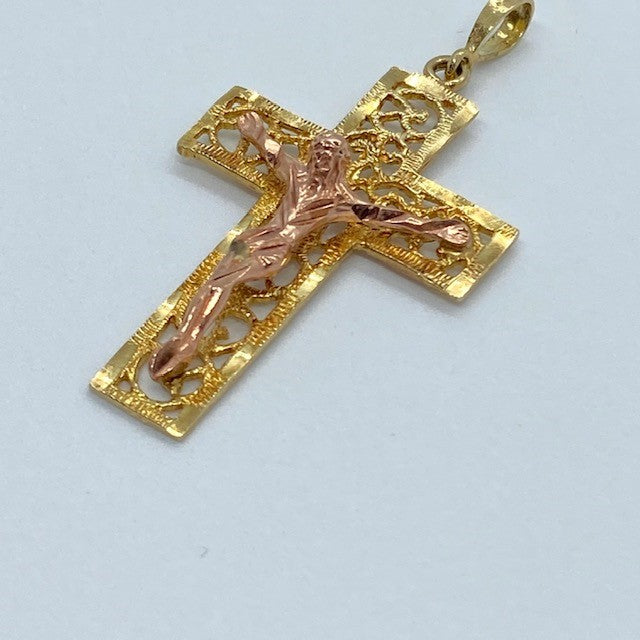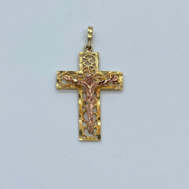 This 10k two-tone crucifix cross offers a timeless and elegant design for those seeking a meaningful piece of jewelry. Made from high-quality 10k gold, the two-tone element adds a unique touch while the crucifix symbolizes faith and devotion. Perfect for everyday wear or special occasions, this cross is a beautiful representation of one's beliefs.